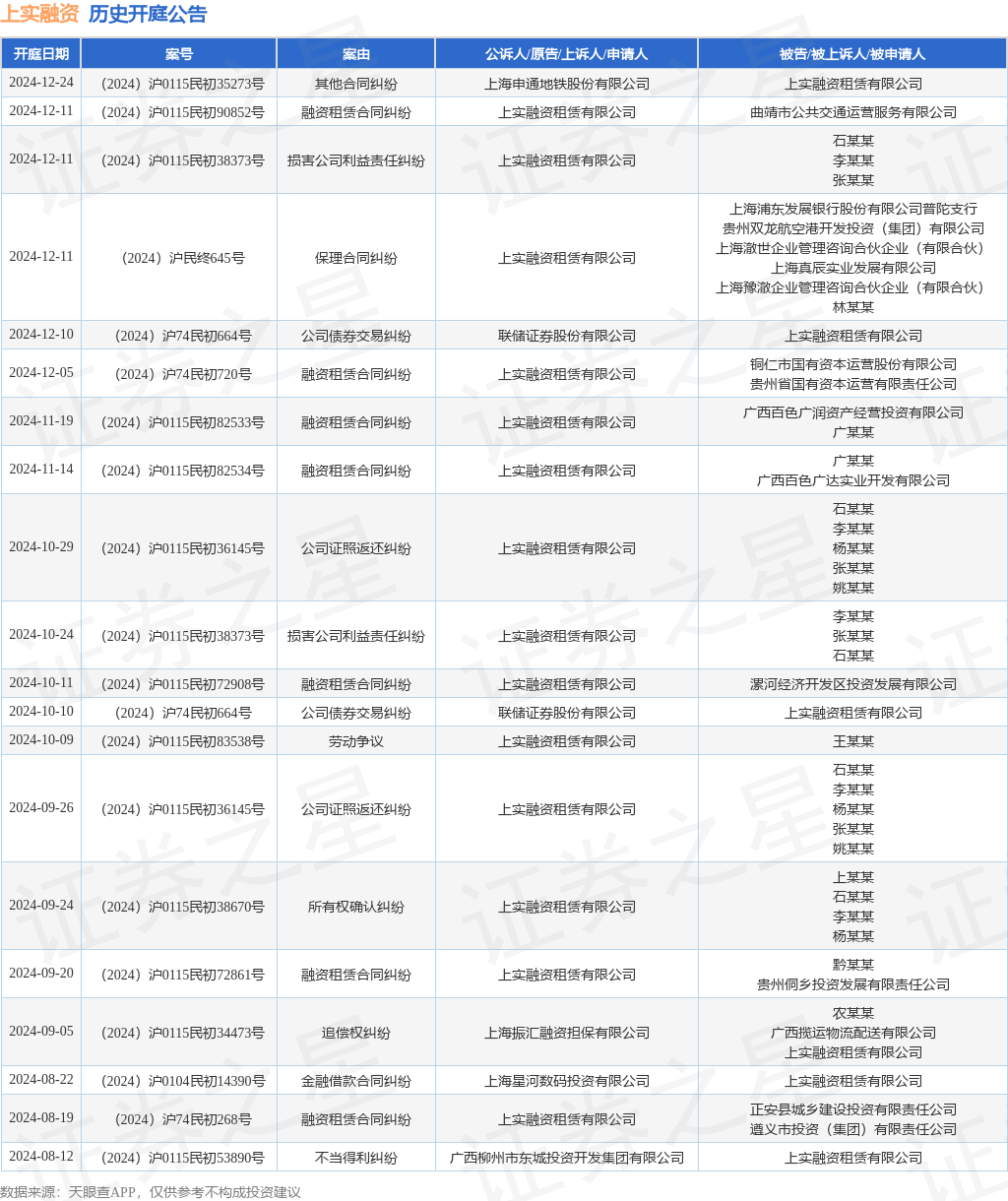 本站消息,根据天眼查APP显示,近日公布了一则上实融资租赁有限公司作为被告/被上诉人的开庭公告,详细内容如下: